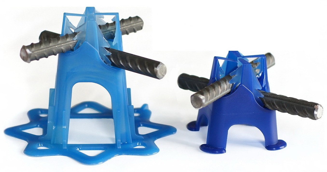 | Применение | Для сыпучего грунта: установка на поверхность из щебня, гравия, либо плотного утеплителя, например XPS. Применяются при производстве работ по армированию монолитных конструкций, фундаментов, бетонных полов, дорог и т.д. Перед началом работ на сыпучую (водопроницаемую) поверхность укладывается гидроизоляционный материал (например, ПЭ пленка) для предотвращения обезвоживания бетона до его созревания. |